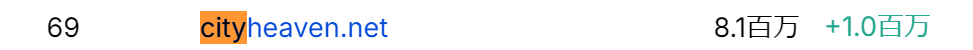 シティヘブンという風俗情報サイトは、日本におけるウェブサイト全てのアクセスランキングの69位(2024年6月現在)になっています。